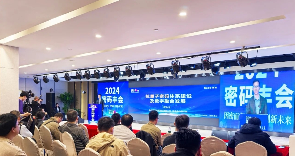 会议聚焦商用密码前沿技术和应用创新,前瞻行业动态。主题演讲环节,微拍堂官网信息北京公司技术总监何金龙发表《抗量子密码体系建设及数字融合开展》主旨演讲,向与会人员阐述抗量子密码技术的开展趋势、微拍堂官网信息的抗量子“密码+”体系建设,以及公司在电力、物联网、金融等多个监控场景的实际应用案例。